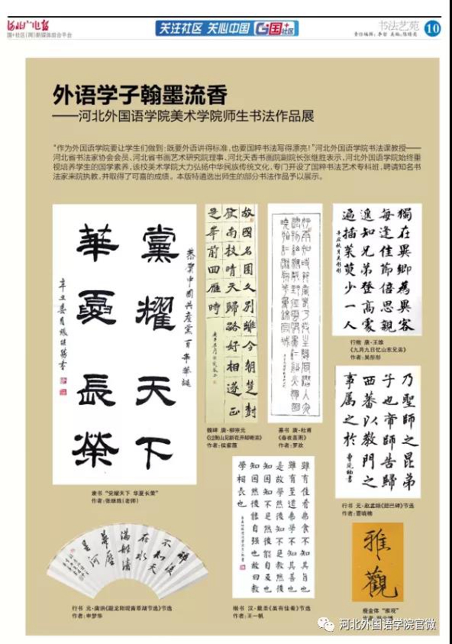 《河北广电报》、燕赵晚报刊登河外师生书法作品