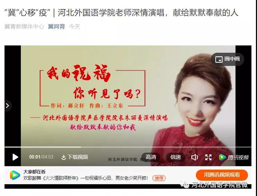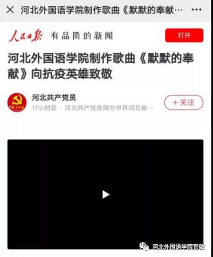 石家庄日报、河北教育网、河北党史、河北共产党员网等报道河北外国语学院制作歌曲,助力抗疫