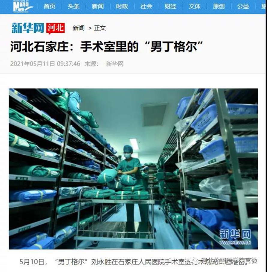 新华网报道手术室里的“男丁格尔”——河北外国语学院国际医学院17届护理学毕业生刘永胜。