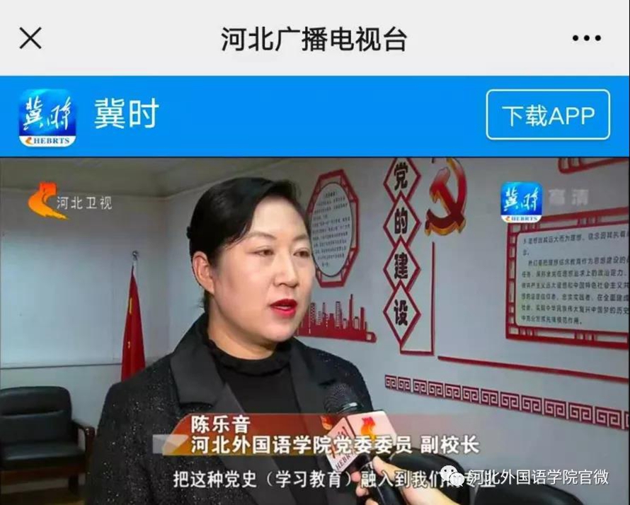 河北广播电视台冀时客户端报道河北外国语学院创新形式开展党史学习教育