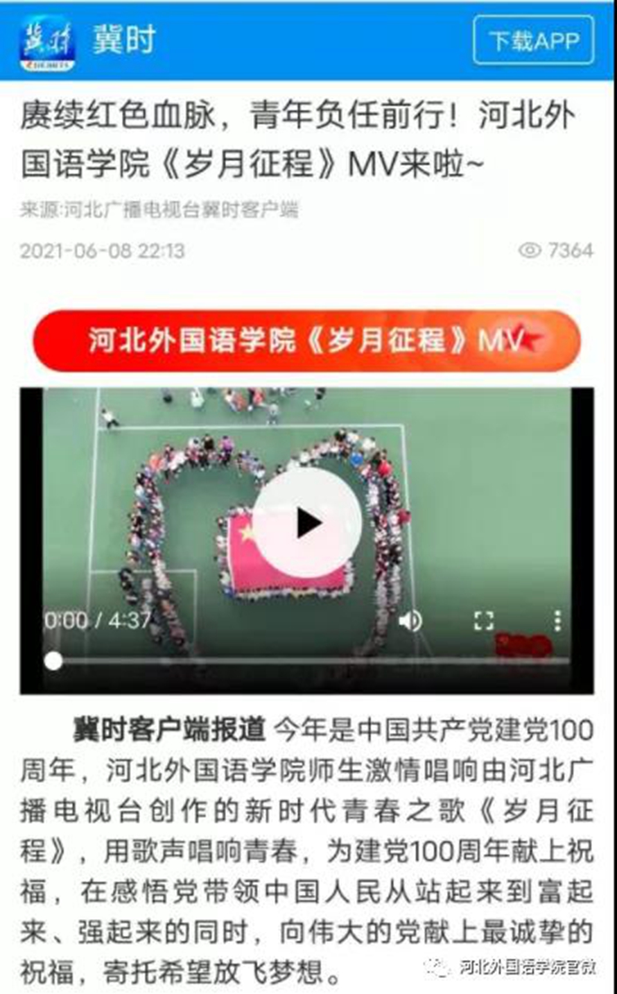 河北广播电视台冀时客户端报道河北外国语学院《岁月征程》MV