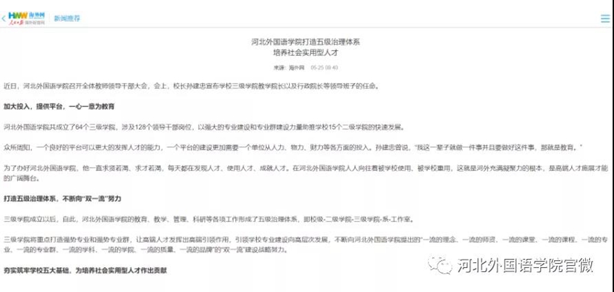 人民日报海外网报道河北外国语学院打造五级治理体系,培养社会实用型人才