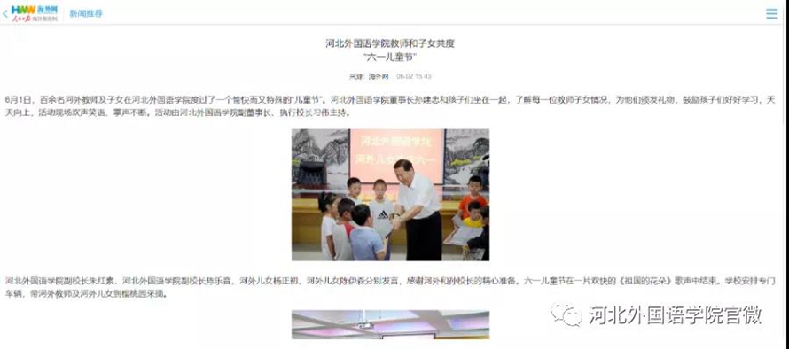 人民日报海外网报道河北外国语学院教师与子女共度“六一儿童节”