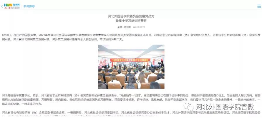 人民日报海外网报道河北外国语学院委员会发展党员对象集中学习培训班开班。