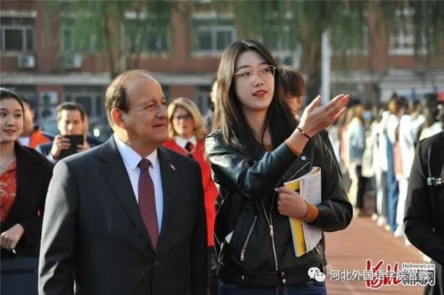 彭薪樾陪同哥斯达黎加驻华大使罗德里戈·德尔加多·索托参观学校。