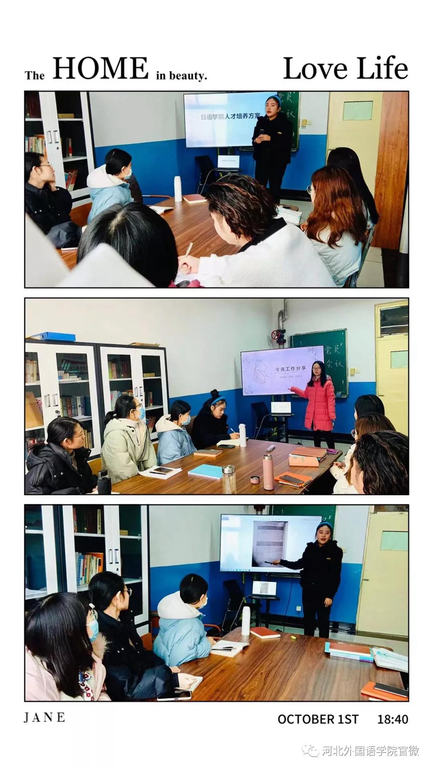 多年来,河外早已形成一种文化传统,“假期不是用来休息的,而是用来学习和赶超的”。为实现“全员育人、全程育人、全方位育人”的育人目标,同时为新学期教育教学工作积蓄能量、做好充足准备,在寒假来临之际,河北外国语学院各党总支、各学院、各教研室纷纷组织本部门辅导员、专任教师、领导干部等广泛开展教师培训,包括任课教师教学技能、教学方法、课堂设计培训,辅导员教师与学生沟通技能培训,师生科研培训,专业人才培养方案修订培训,双一流课程建设培训,产学研合作培训,示范课观摩等。