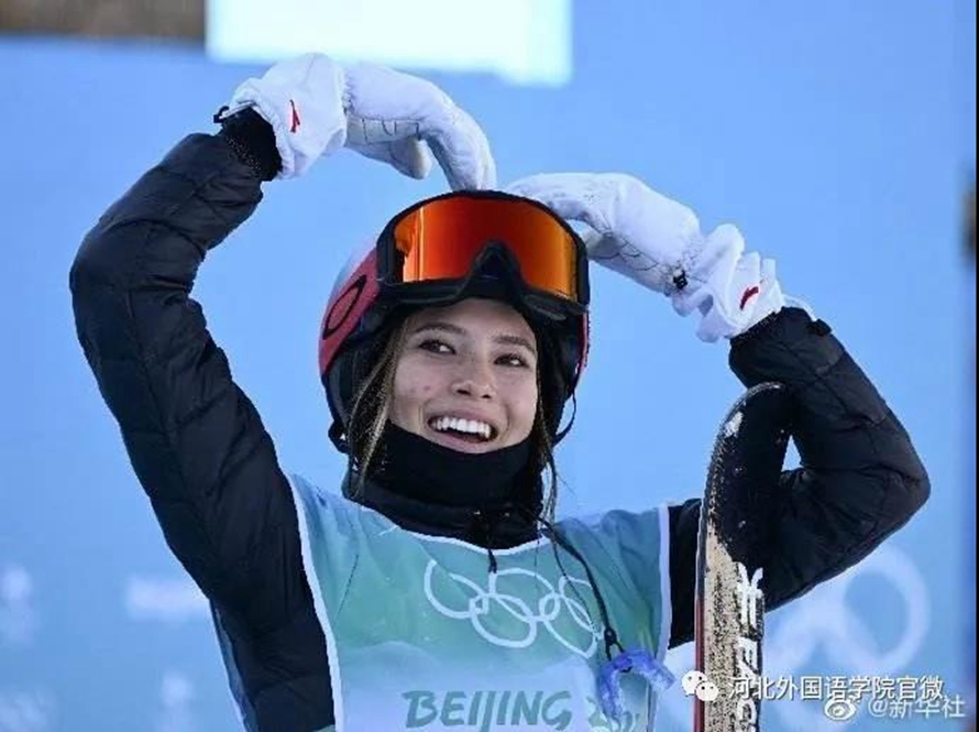 作为冬奥会的志愿者,来自河北外国语学院日语学院刘亚轩同学,在比赛前几天有幸为谷爱凌提供过帮助,谷爱凌还和刘亚轩同学进行了短暂的亲切交谈,让刘亚轩同学至今记忆犹新。“她的美甲图案是奥运五环,这让我看到了什么是热爱,什么是奥林匹克精神。”刘亚轩同学激动地说,“她太厉害了,滑雪大跳台夺冠了,三跳全部完美呈现,简直教科书般的跳跃,她是我的偶像!”