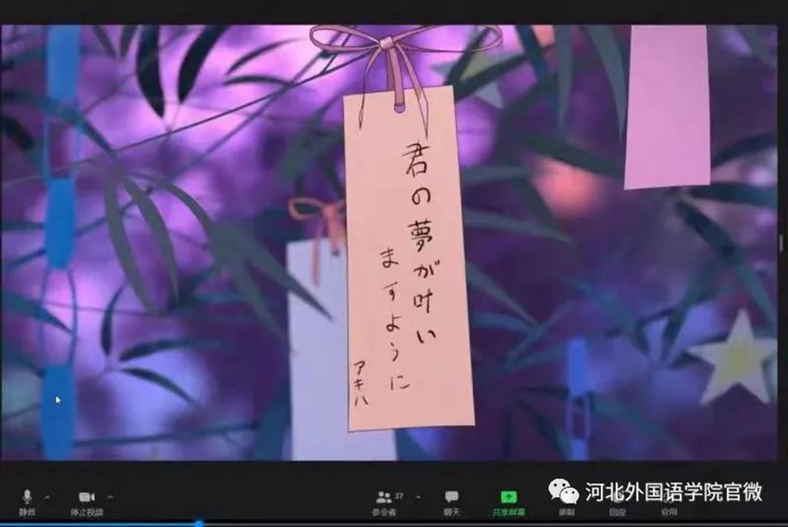 在闭幕式上,播放了本次交流项目中的最佳动漫作品《夏日の夜空 君の隣》和《战地的琴声》,彰显了学生在作品绘制、人物设计、脚本创作和配音配乐等方面扎实专业基本功。