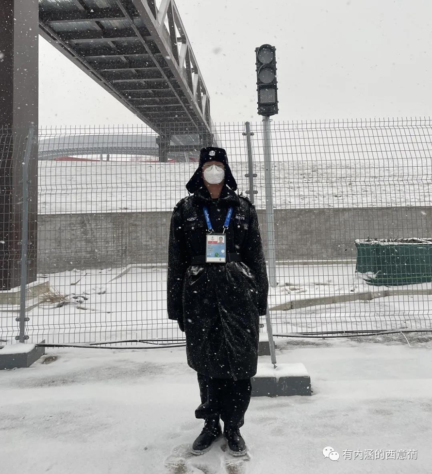 同样负责安全工作的还有在北京国家速滑馆赛区担任防爆安检工作的勾健,和延庆赛区负责安检工作的董佳娜,他们分别来自河北外国语学院西意葡语言学院和国际商学院。繁重的安保工作让他们疲惫,多变的天气给他们增加了阻力,但他们累并快乐着,用尽职尽责的坚守,书写着青年人的责任。
