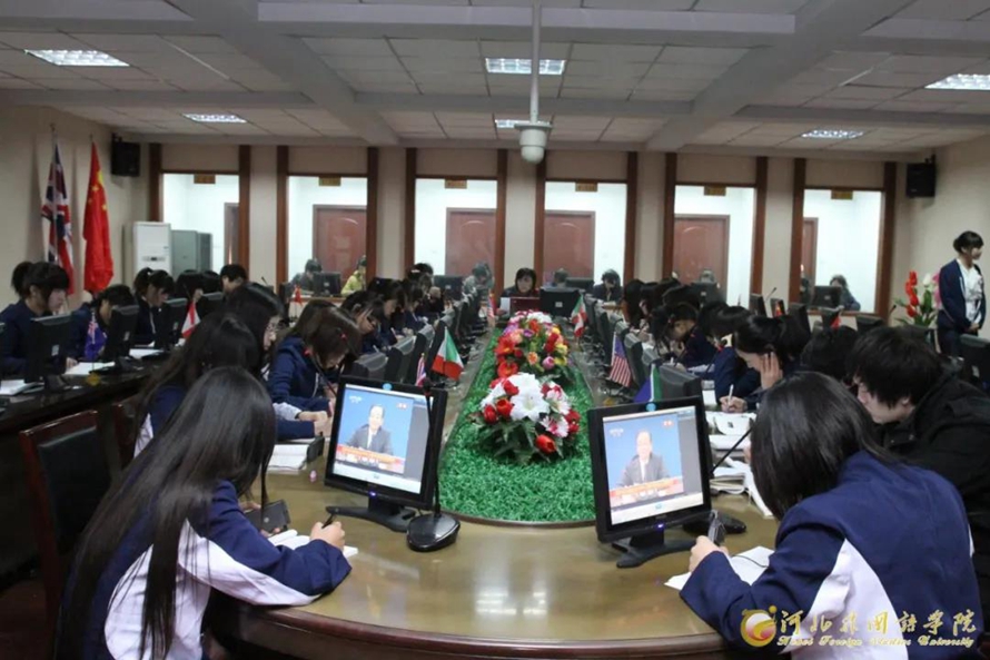 为此,学校建学之初就打造了多个实训室,经过20多年的发展,河北外国语学院至今已根据专业群建设有百余个实训室,包括多语种情境实训室、各专业实训室等。各个实训室内设置示教机,中外教师在这里向同学们展示、讲解专业知识。