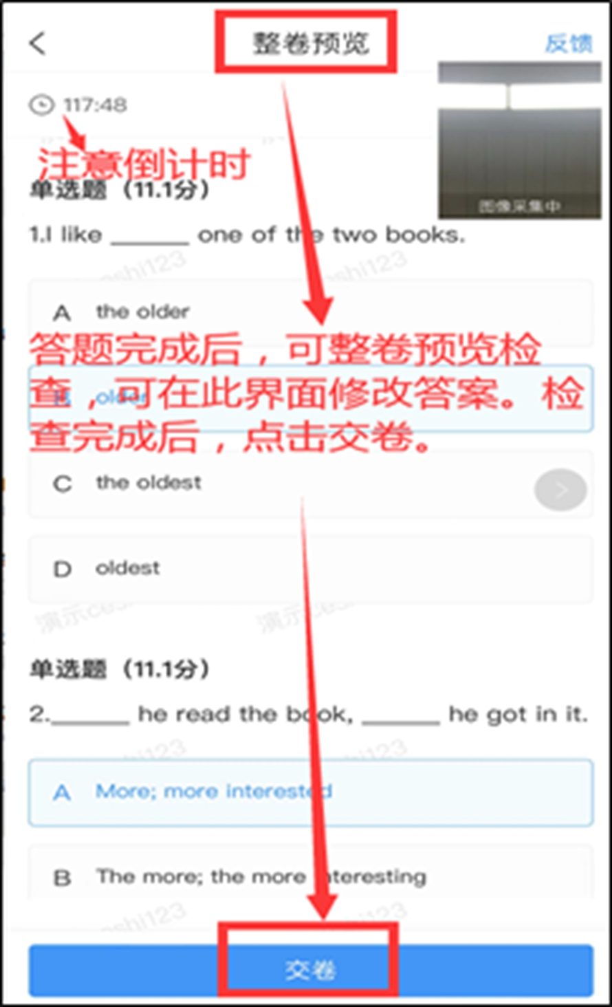 答:本次考试允许提前交卷。交卷后,请退出所有设备。