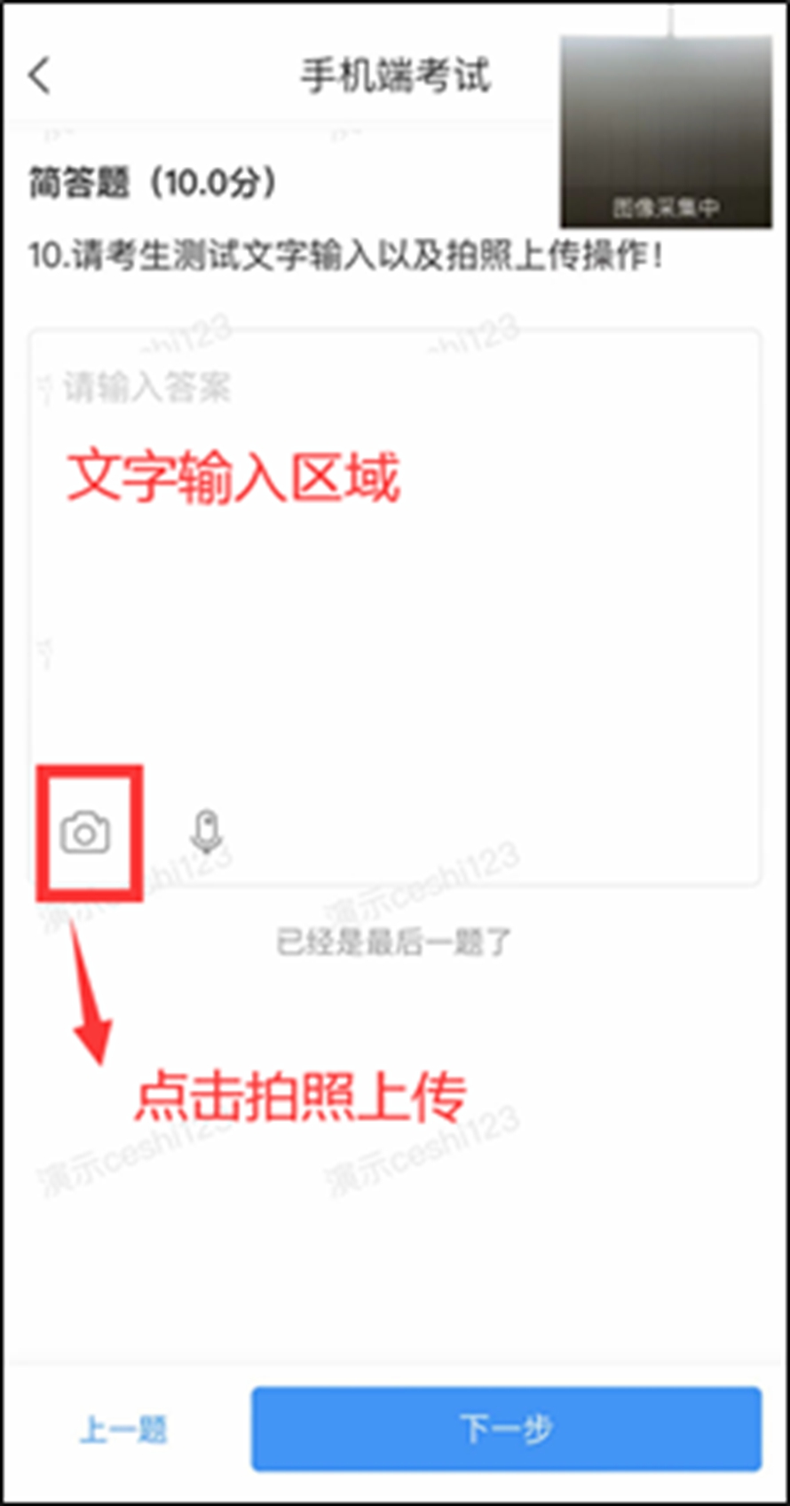 请考生务必按照通知的要求,在正式考试前规定的时间内完成系统调试和考试流程模拟演练。此环节不记入正式考试成绩,完成作答后考生可随时离开,结束测试。