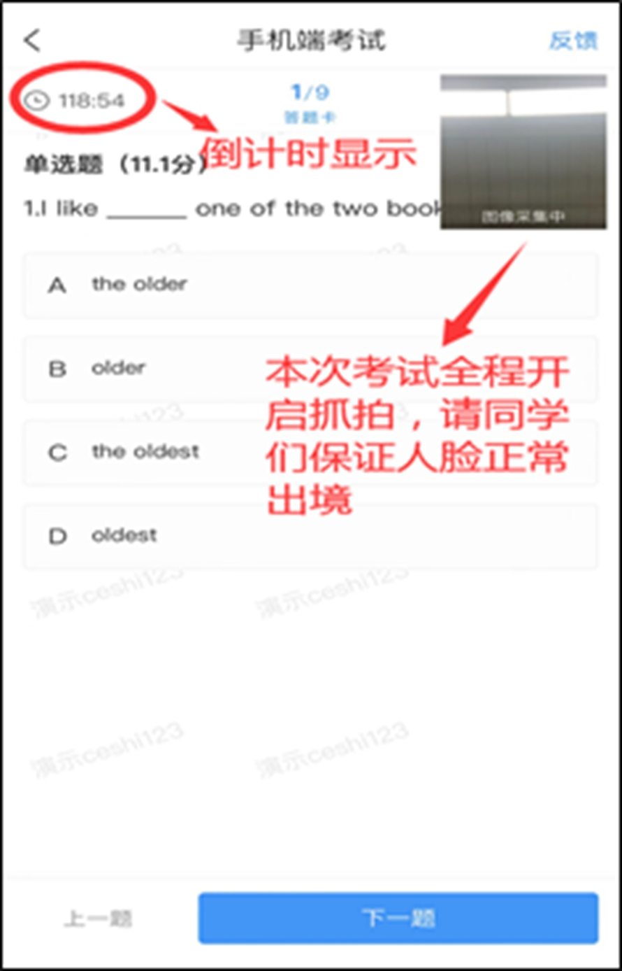 2.考试均有限时,请考生提前做好准备,准时进入考试。进入考试后,中途不允许退出考试,退出考试界面,系统均会记录。同时,退出考试,考试倒计时仍在进行。