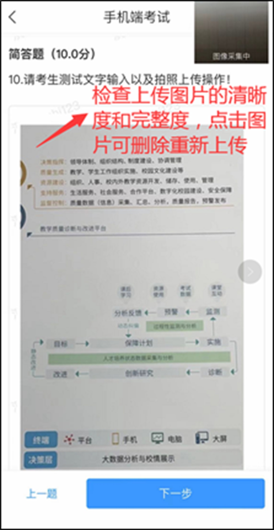 选择题,直接选择A、B、C、D作答,简答题(翻译题或作文题),请考生将答案写在A4纸上,拍照上传,上传完成后检查图片的清晰度和完整度。图片不清晰,可点击图片删除,重新上传。核对无误,点击“下一步”。