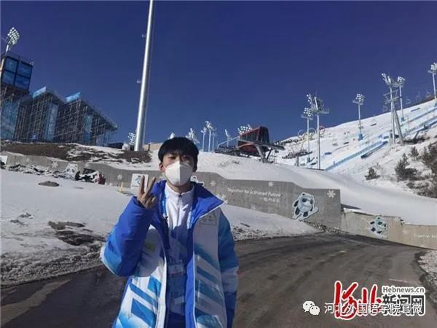 1月23日,在北京2022年冬奥会开幕倒计时12天之际,河北外国语学院国际金融学院2020级学生赵柯霖随团队来到张家口赛区马丈子临时交通场站。
