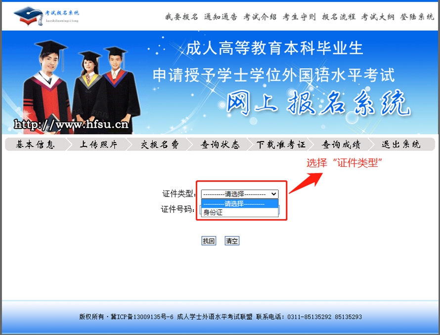 登录进网站(www.hfsu.cn)后,点击“找回编号”