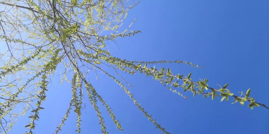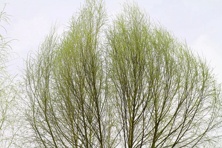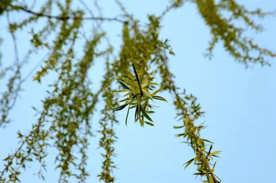 一阵春风吹来细如丝发的柳条褪去白色的冬装穿上了嫩青的衣衫在风中尽情摇曳跳起曼妙的舞姿触摸春天的生机与美好