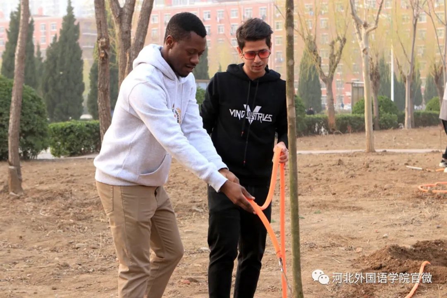 植树现场,热火朝天。虽然春风带着几分凉意,但仍然挡不住外国专家们植树的热情,他们认真种好每一棵树,并在种好的树旁拍照留念。来自马达加斯加的外国专家Amedo Noela Elodie EDA(安好)表示:“来中国已4年,但参加这样的植树活动还是第一次,很高兴能够和石家庄的朋友们共同参与到营造绿色环境行动中,这样的活动值得继续参加,希望越来越多的和我一样来自外国的友人参与进来。”河北外国语学院外籍教师YOUCHAOU KORAMOU MOUHAMAN SANI(桑尼)讲道:“虽然疫情让我们减少外出,但这次活动让大家相聚在一起,共同为石家庄植树添绿,这代表着生生不息的希望,相信大家一定能战胜疫情,迎接春天的到来。”