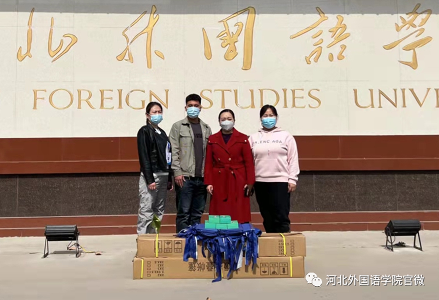3月15日,河北外国语学院航空旅游学院21级酒店管理班班长、学生会秘书部干事崔子硕同学及家长,特从石家庄郊县采购2顶隔离帐篷(2米*3米),5把手持测温枪,并亲自开车送到学校,因疫情防控需要,顾不上多停留,又立即返回家。学院党组书记陈乐音、院长姚佳、学生工作部部长张艾丽、辅导员左磊代表学校向学生家长、学生本人表示感谢!