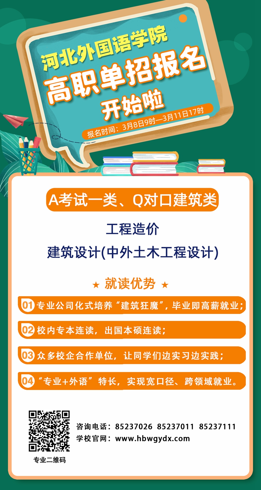 2022年考生,读河北外国语学院单招,可实现专本“连”读