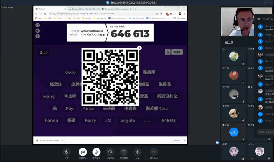 BrettCumming教授带领帮助学生使用软件完成跨越了两个国家间距离的问题回答,这种全新的授课方式得到了学生的大力支持与喜爱,也提高了同学们对英语学习兴趣与效率,活跃了课堂氛围。在这样身临其境的课堂中,同学们学习了a/an,is/are/be…….的语法知识,BrettCumming教授还在课堂中向学生们传授了一些英语口语知识。BrettCumming教授新颖的课堂形象生动地解释了这些语法知识的用法,大大提高了学生学习英语的兴趣与主动性。