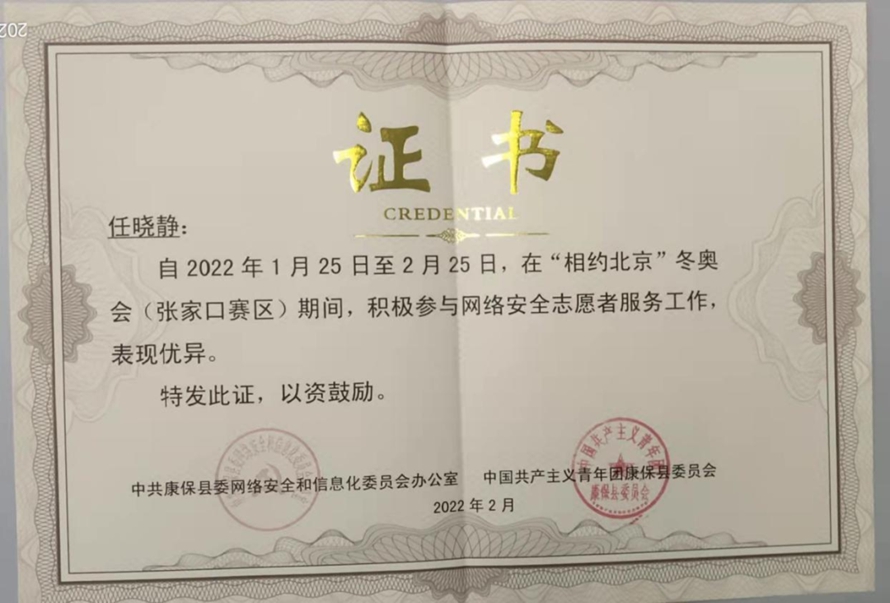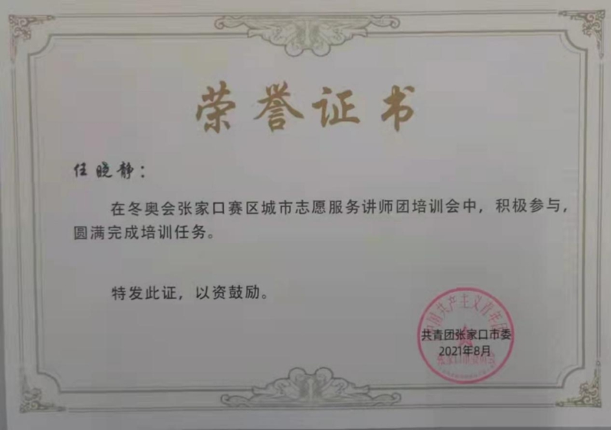 迎接冬奥会准备期间,任晓静积极发布冬奥志愿者招募令,先后协助团县委对报名志愿者进行线下选拔及线上培训,其中多数城市志愿者都是通过她报名并参加冬奥志愿服务。
