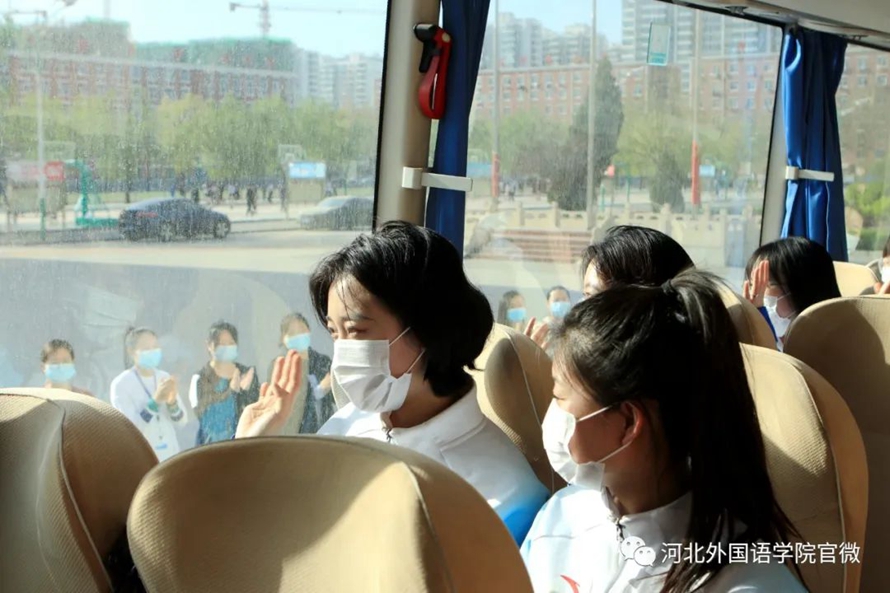 2022年4月4日,河北外国语学院传媒学院20播本二班冬奥会志愿者高海琪结束隔离,回到阔别已久的河北外国语学院校园,也回到最亲爱的同学们中间。