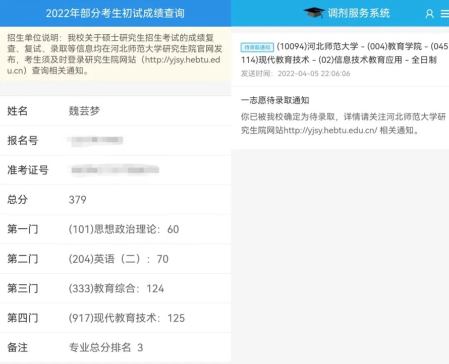 魏芸梦说;“如果你决定了考研,那么就去付诸行动,不要摆烂!卸载抖音和游戏,跳出你的舒适圈,为自己的梦想而努力。每个优秀的人都有一段沉默的时光,那段时光是付出了很多努力却得不到回报的日子,我们把它叫做“扎根”。只有拒绝安逸,才不会脱离梦想的轨道!愿大家珍惜现在能够学习的时光,让未来的自己不留遗憾!”