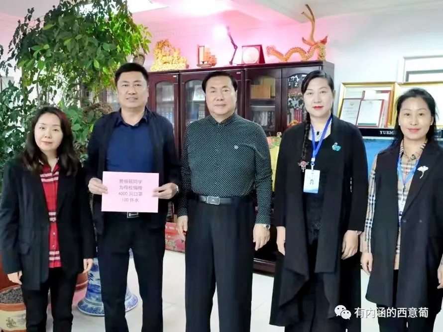 贾恒硕同学已经不是第一次对学院、对学校进行捐赠了,早在2020年疫情刚开始时,他不仅在自己的家乡担任疫情防控志愿者,还心系学校,为学校捐赠了5000只口罩、60套防护服。2021年1月石家庄疫情肆起,为了保障学生师生物资不断,贾恒硕分别两次捐赠共计10000只口罩和100箱矿泉水。并在“我与母校共建绿色新校园”活动中做出突出贡献。