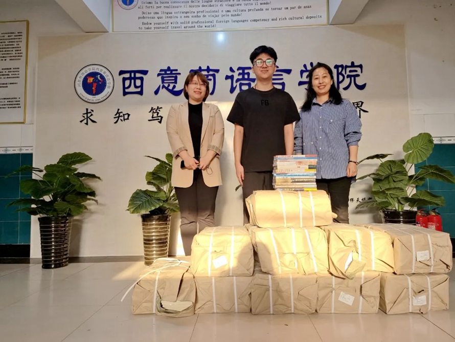 河北外国语学院西意葡语言学院19西本4班贾恒硕,向学校新校区捐赠500本图书,为河北外国语学院新校区的建设添砖加瓦。