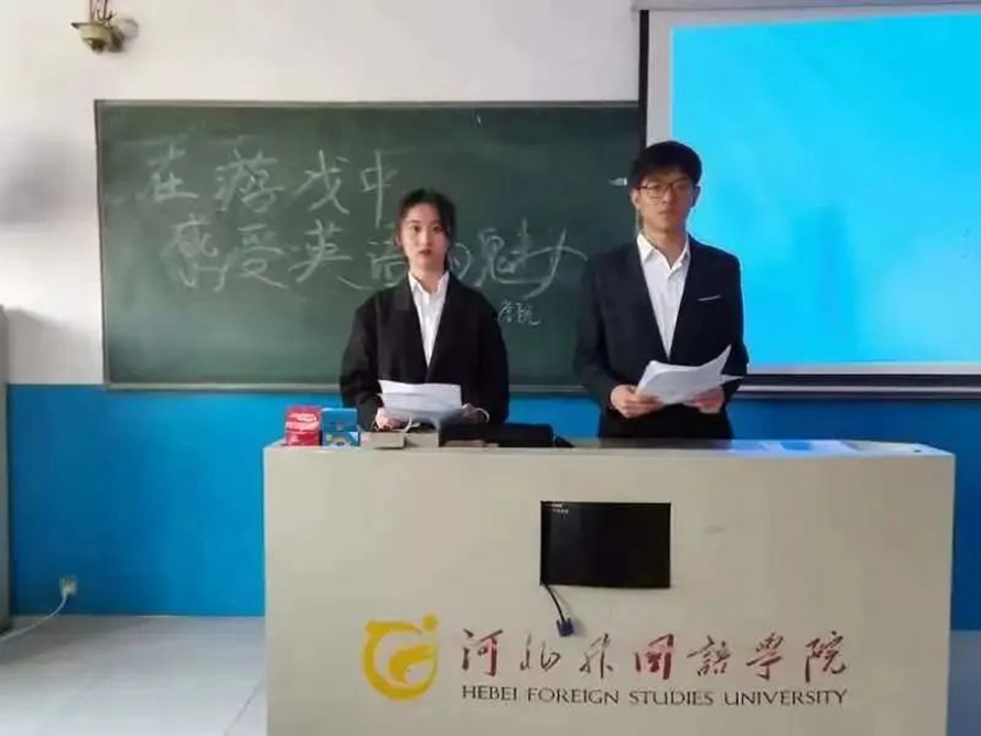9. 4月23日,河北外国语学院英语学院举办英语趣味活动,旨在以有趣的形式活跃课堂气氛,增强英语的听说读写能力。