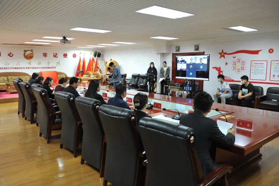 河北外国语学院董事长、校长孙建忠院士,副董事长、执行校长习伟教授,国际交流副校长陈伟,科技处处长尹霞、日语学院院长张桉菂出席了本次会议。日本创价学会副会长寺崎広嗣、国际二部副部长梶浦伸作以及创价大学副校长小山内优、国际处处长川上喜彦等日方领导9人出席本次会议。