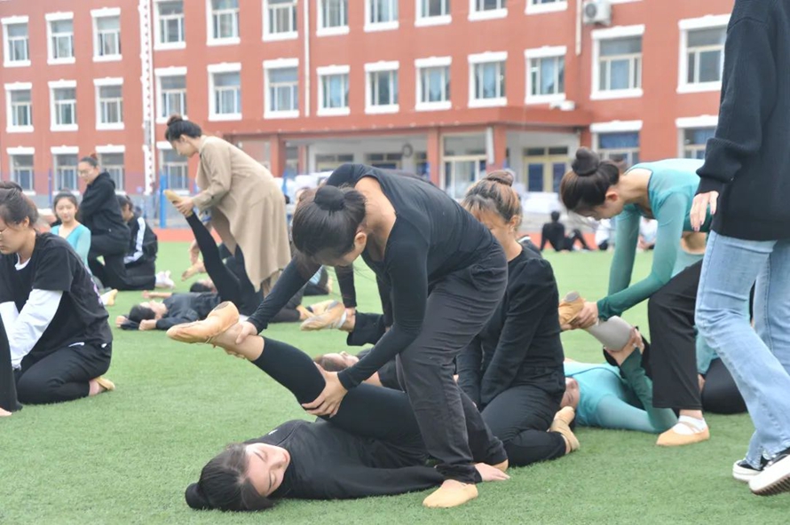 老师指导同学们的基本功