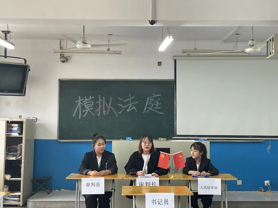9. 5月6日,河北外国语学院国际商学院举办模拟法庭活动,促进同学们理论知识到实践技能的转化。