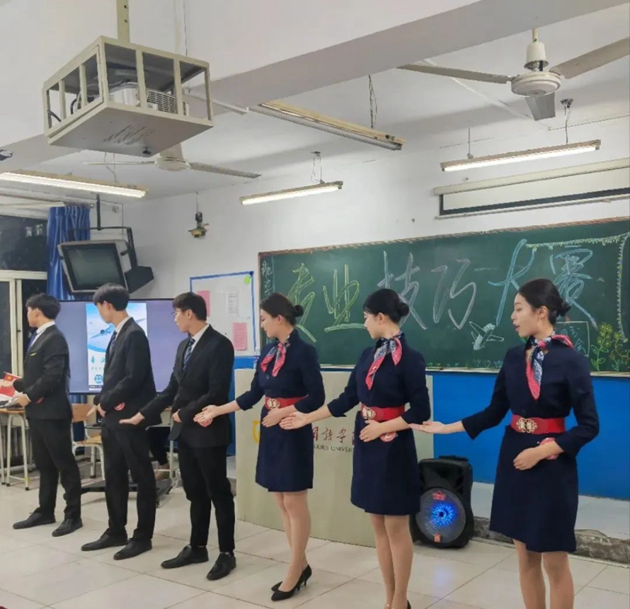 4. 5月6日,河北外国语学院航空旅游学院举行 “提高专业动手能力,展示技能人才新风采”的专业技巧大赛,展现同学们的专业技能,练就自身的专业形象。