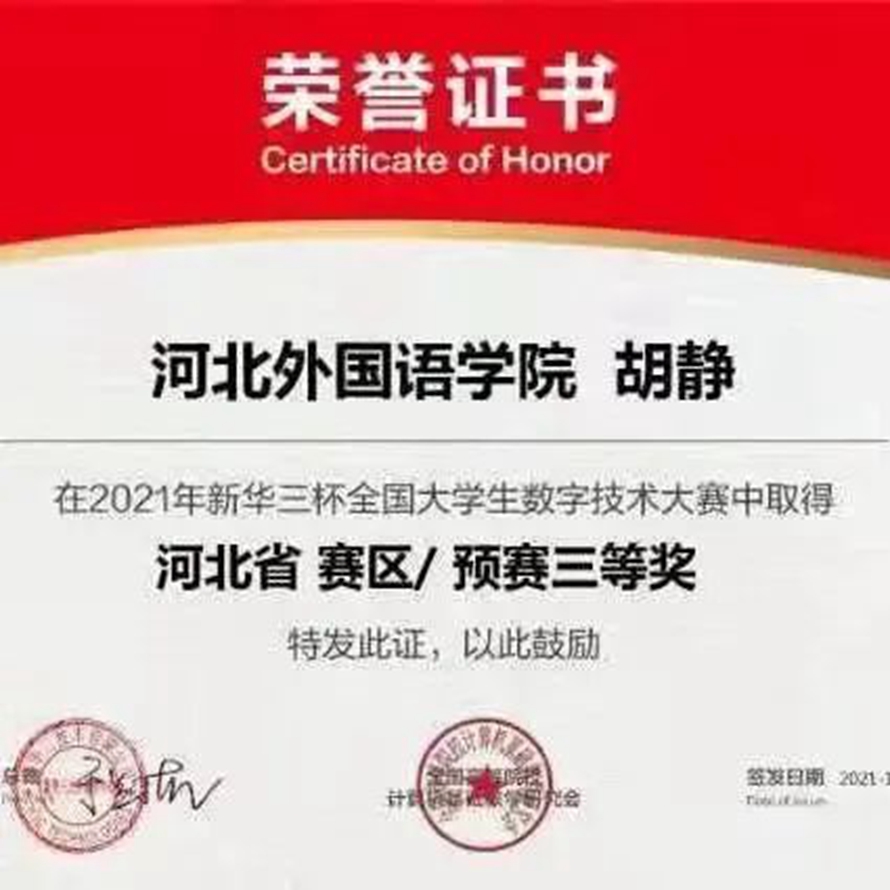 一个学期,三项二等奖,六项三等奖,一部作品入选国家级文献项目,他们就是优秀的河北外国语学院计算机学院学子。