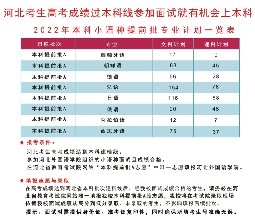②参加河北外国语学院组织的小语种面试且成绩合格。