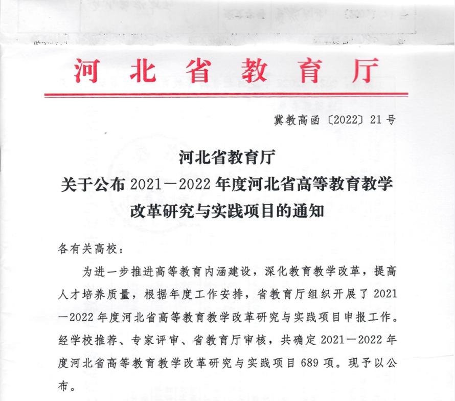近期,河北省教育厅发布《关于公布2021-2022年度河北省高等教育教学改革研究与实践项目的通知》,经学校推荐、专家评审、省教育厅审核,确定河北外国语学院5个项目为2021-2022年度河北省高等教育教学改革研究与实践项目。