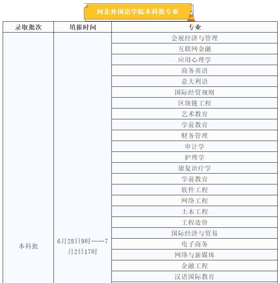 2022年6月28日9时——7月2日17时,四个批次:本科提前批A、本科提前批B、对口本科批、本科批将进行志愿填报,河北外国语学院在各批次均有招生,欢迎广大高考生报考河北外国语学院!