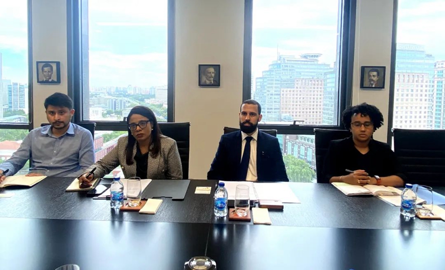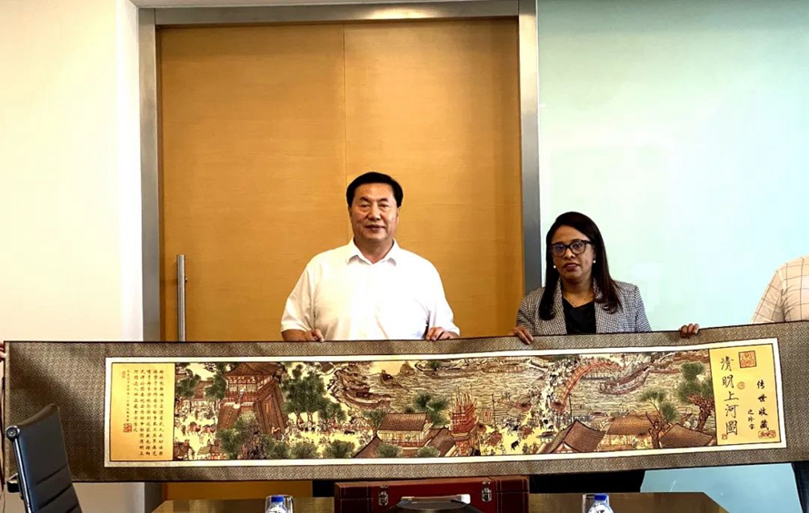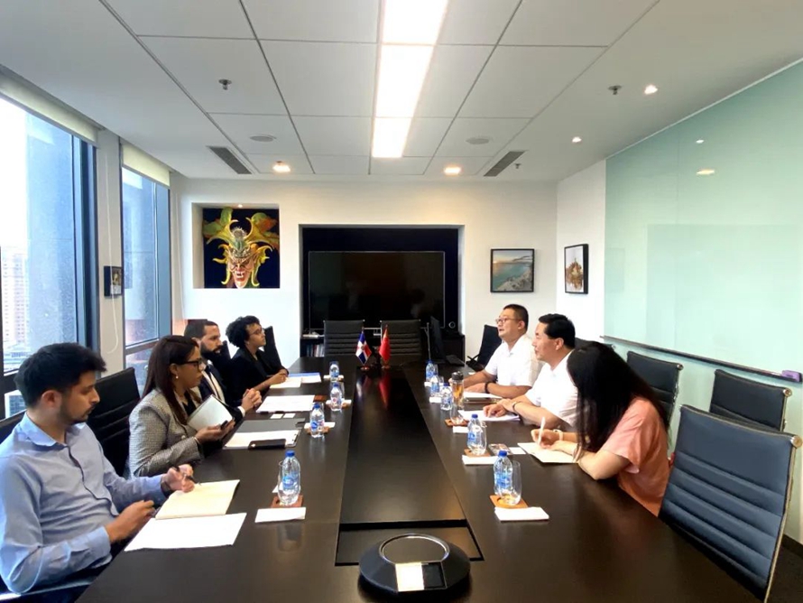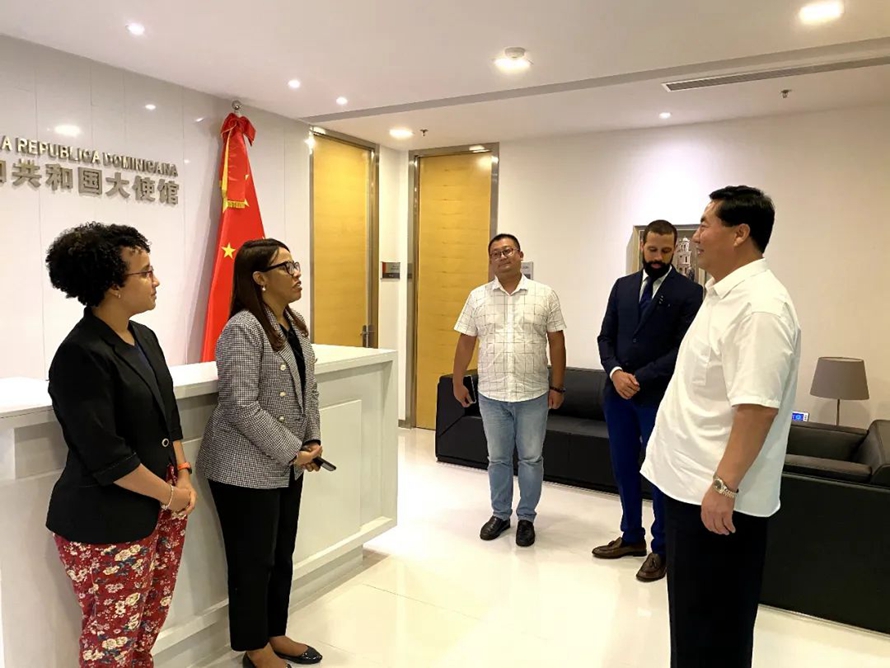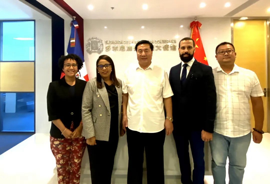 2022年8月19日下午,河北外国语学院董事长、校长孙建忠院士率领河北外国语学院代表团访问多米尼加共和国驻华大使馆,受到多米尼加共和国驻华大使馆副馆长、公使衔参赞罗莎·伊雷内·佩雷斯女士的热情欢迎和亲切接见,双方会谈气氛融洽,成果丰硕。