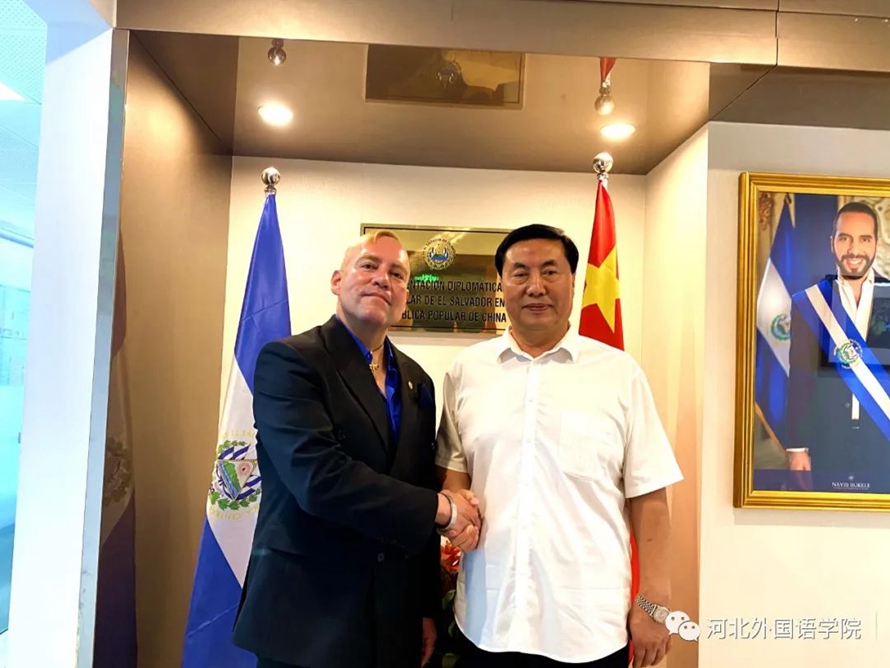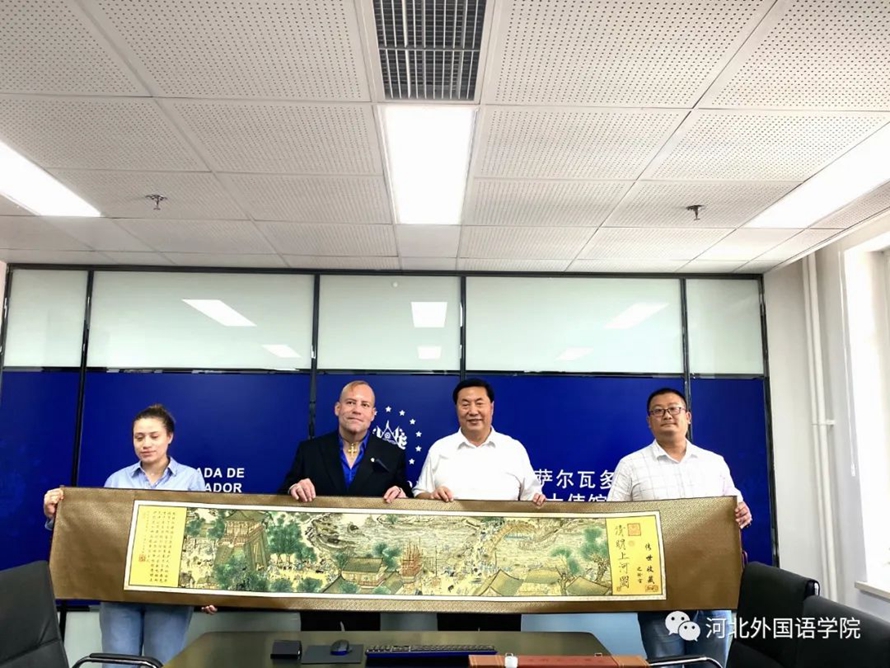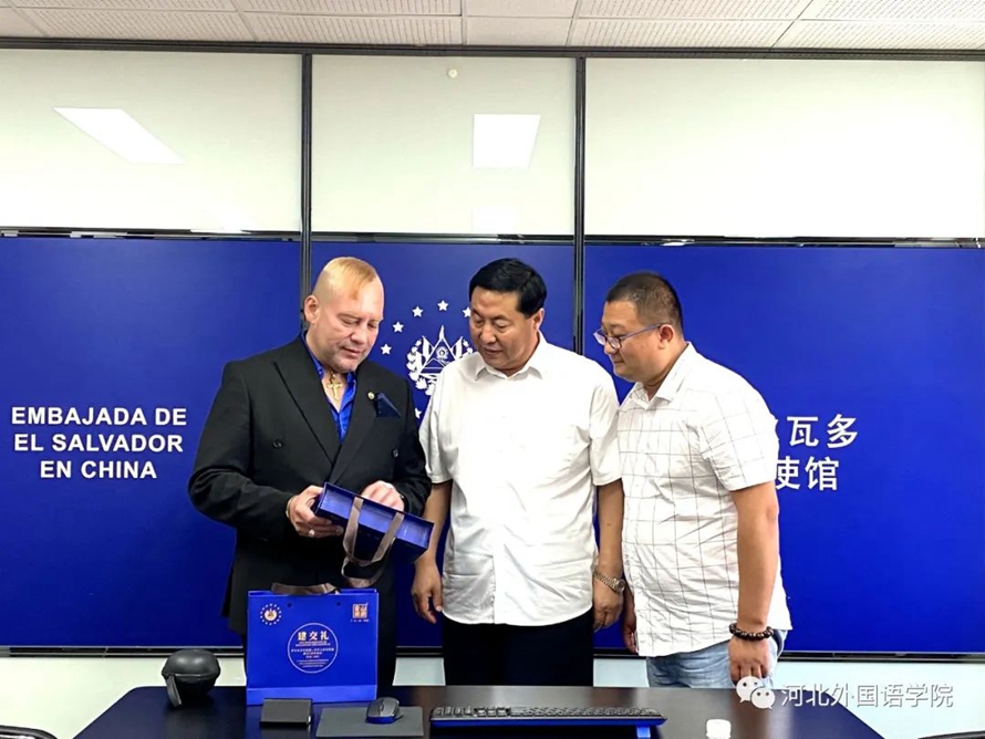 萨尔瓦多共和国驻华特命全权大使阿尔多·阿尔瓦雷斯先生是一位拥有20多年教龄的高校教授,高等教育工作履历丰富,大使先生表示,将全力支持河北外国语学院与萨尔瓦多高校的合作,推动河北外国语学院与萨尔瓦多多所大学在高校互派教师、学生留学等方面进行深度合作,推动两国地方政府间能够缔结国际友好城市关系。