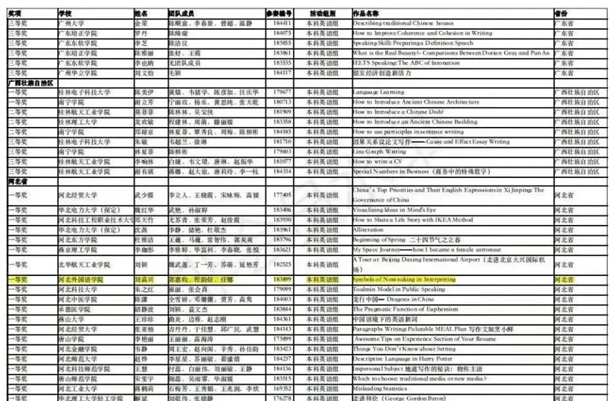 of Note-taking in Interpreting获得本科英语组一等奖;李瑞思老师及其团队成员(李晓亮、田敬杰、魏玉莹、王欢)的作品Canlenders