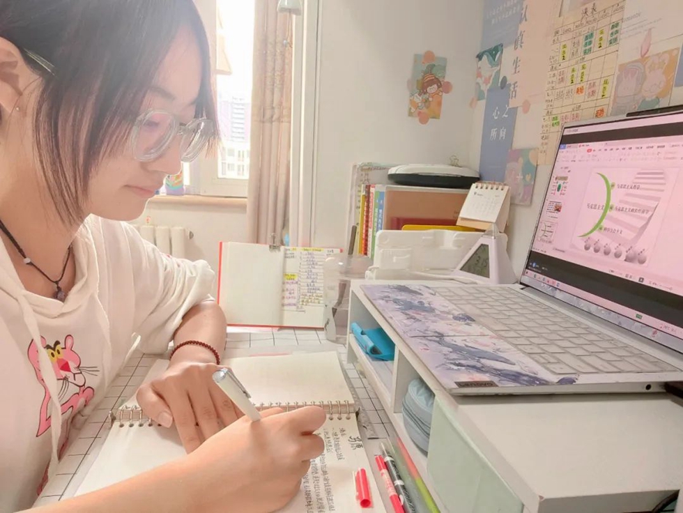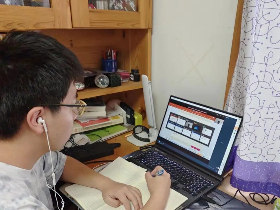 即使是在线上也阻挡不了学生们的热情。正所谓一年之计在于春,一日之计在于晨。各班学生每天早晨准时进行线上自习,同学们通过背诵单词、朗读课文等方式扩大词汇量,同时培养语感、纠正发音。