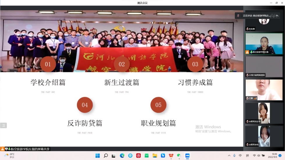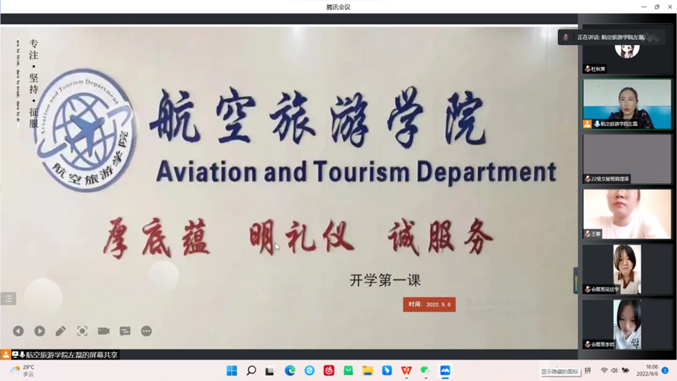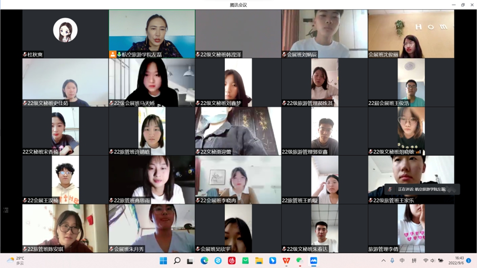 9月6日下午,航空旅游学院召开2022级新生第一次全体班会,班会由各班辅导员主持。
