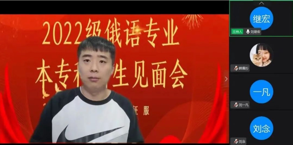 离离暑云散,袅袅凉风起。在金秋送爽的九月,我们终于迎来了2022级本专科新生。为确保在疫情防控形势下,新生能及时地了解学校情况,迅速适应大学生活,缓解延迟开学的焦虑心理,近日,河北外国语学院16个二级学院组织召开新生线上见面会,同学们依次进行了个性化的自我介绍,老师们详细介绍了学校的教育理念以及培养模式,师生互动热烈,切实帮助同学们解决了现阶段的迷茫和困惑,线上见面会在一片欢笑声中结束。辅导员纷纷寄语新生:希望大家做好前期准备和规划,以饱满的精神状态迎接大学生活。