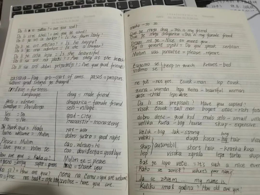 1.美好的一天从记单词开始,无论是否早起,在任何地方,记单词已然成为一种习惯。继续在学校的早西点,从背单词,复习塞尔维亚语开始,到开始上第一节课。