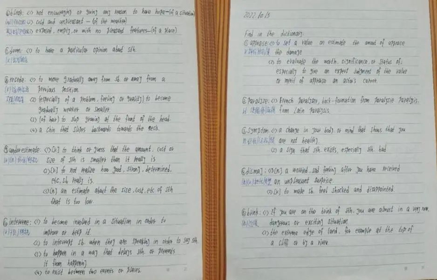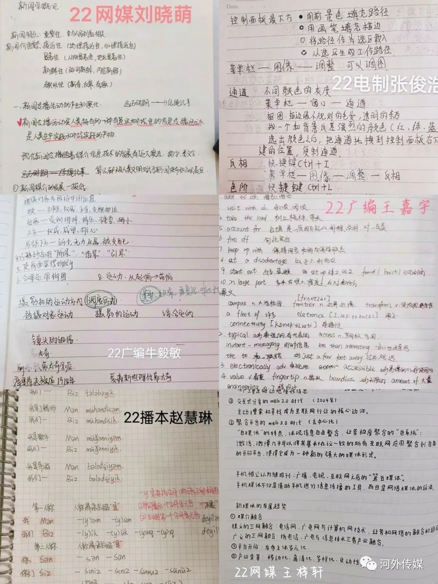 好记性不如烂笔头,分重点记笔记,区分颜色记难点,适时写下疑问点,河北外国语学院学子在网课中也一直在进步。