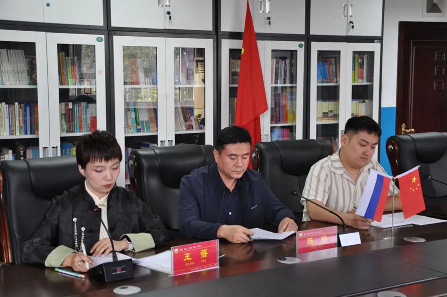 在中国·廊坊国际经济贸易洽谈会期间,根据河北省教育厅工作部署,2022年6月27日下午15:00,河北外国语学院举办与白俄罗斯莫吉廖夫国立大学合作备忘录网上签约仪式。双方就本升硕项目、高中直申本科、教师交流、合作科研等进行了详细的沟通。