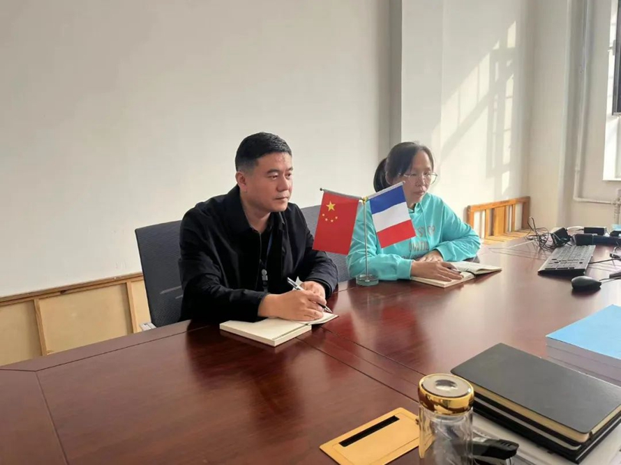 2022年10月25日,河北外国语学院德法语言学院与法国格勒诺布尔阿尔卑斯大学进行线上视频交流会议。