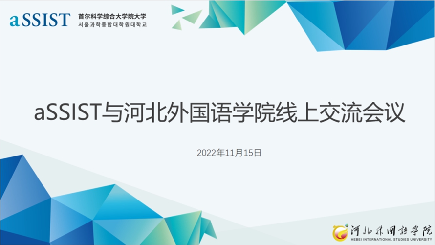 2022年11月15日,河北外国语学院与韩国首尔科学综合大学院大学大学举行线上视频交流会议。会议中,陈伟副校长根据我校学生的具体需求针对本升硕3+1+1模式和博士项目与韩方提出了合作建议,最后双方在AI人工智能、大数据、智慧金融、韩国语教育等专业领域达成初步共识。
